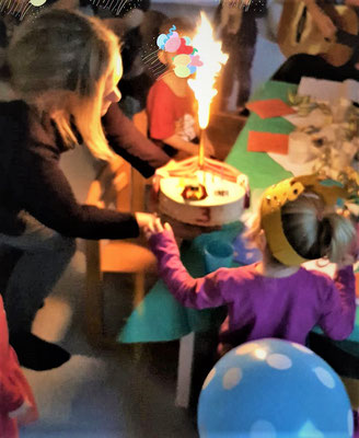 Nach vielen Aktivitäten gibt es eine Geburtstagstafel mit Geburtstagstorte, Hochlebenlassen des Geburtstagskindes und im Anschluss eine Jause.