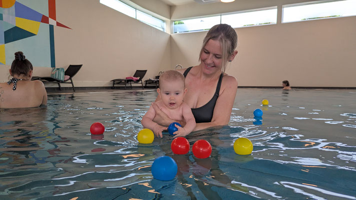 In diesem Kurs werden Babys mit Vorsicht aber vor allem mit ganz viel Spaß ans Wasser herangeführt. Babyschwimmen ist die erste Fortbewegungsform für das Zwergerl und fördert für die weiteren Entwicklungsschritte wie das Krabbeln oder Laufen. Ganz spielerisch werden Übungen und Griffe in Bauch- und Rückenlage, sowie das Tauchen mit Einsatz von Lied-, und Spruchgut erlernt. Ziel der Stunde ist, gemeinsam mit anderen Säuglingen und Eltern, die Freude an der Bewegung im Wasser zu erleben.