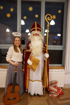 In einer gemütlichen, besinnlichen und vor allem weihnachtlichen Atmosphäre, feiern Groß und Klein gemeinsam das Fest des heiligen Nikolaus. Nachdem wir uns mit traditionellen als auch neuen Weihnachts- und vor allem Nikolausliedern mit Begleitung von Instrumenten eingestimmt haben und der Adventkranz entzündet wurde, gibt es eine kurze Nikolausgeschichte.